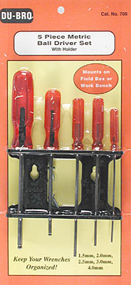 This is a Five Piece Metric Ball Wrench Set with Holder from Dubro.